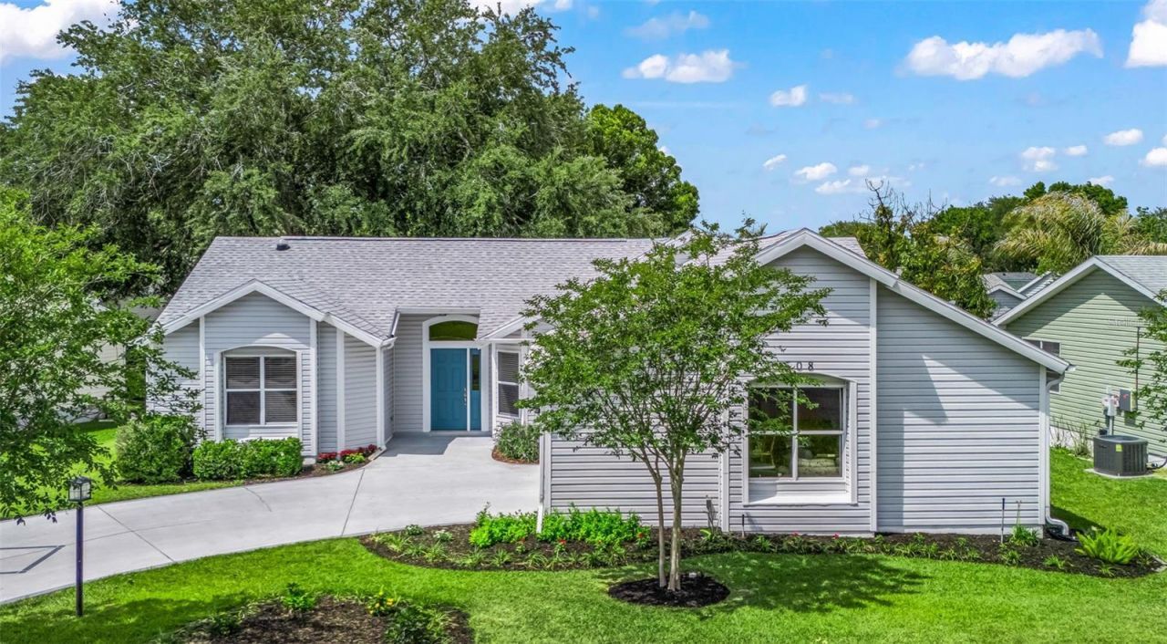 Wow! CHARMING, MOVE-IN READY 2/2 plus office Coronado MUST SEE home offers BRIGHT, AIRY, spacious floor plan in PRIME LOCATION!!! NO BOND!!! New luxury vinyl flooring and high ceilings greet you as you walk into the living room/dining room combo perfect for entertaining. Cooks will love the large kitchen with QUARTZ COUNTERTOPS and beautiful OAK CABINETRY. From your kitchen step into the office/florida room to your private deck where you can enjoy your morning coffee or afternoon cocktail. HOME IS NESTLED BETWEEN 2 GOLF COURSES (Mira Mesa & Chula Vista) just 4 minutes to nightly entertainment, dining and boutique shopping at Spanish Springs Town Square and 3 minutes to the preferred Chula Vista recreation area equipped with pickle ball courts, pool, tennis courts, bocce and beach tennis. Retail shopping on 441, Lake Sumter Marketplace Square, Spanish Plaines Medical Center and UF Hospital are minutes away.NEWER ROOF 2020, NEWER A/C 2023, NEWER WATER HEATER 2020!Home features new landscaping in large front yard with beautiful trees, expanded garage (26 x 23) and extra long driveway for additional parking. Solatubes, inside laundry, new blinds, Florida friendly berber carpet in bedrooms, shelving, storage, sink and folding stairs to floored attic in garage.. Kitchen is large enough to add window seating and floor to ceiling cabinetry for enthusiastic cooks. This charmer is a must see!BOND is paid in full. Monthly amenities fee: $204. All measurements are approximate and to be verified by buyer.